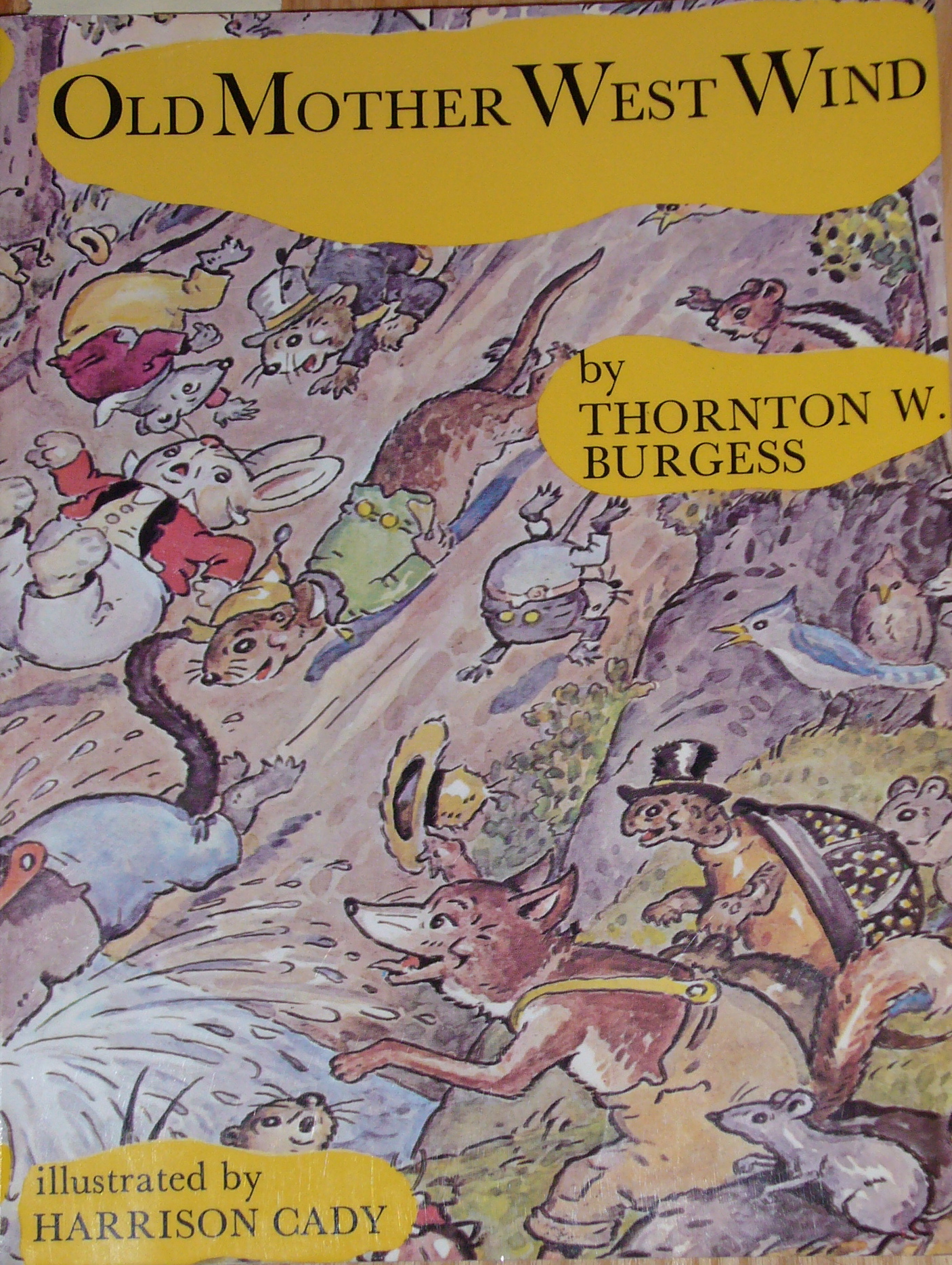 Old Mother West Wind“Old Mother West Wind came down from the Purple Hills in the golden light of the early morning. Over her shoulders was slung a bag – a great big bag – and in the bag were all of Old Mother West Wind’s children, the Merry Little Breezes.”……” When she reached the Green Meadows, Old Mother West Wind opened her bag, turned it upside down and shook it. Out tumbled all the Merry Little Breezes and began to spin round and round….”  The Merry Little Breezes explore the forest one story at a time. Mr. Burgess collected 16 tales in this volume, the first of over seventy books.Through nature we learn how to behave and why rules are important. Qualities of loyalty, friendship, trust, hard work and the consequences of misbehavior are all lessons we hope to instill in our children, as well as hold in our subconscious forever.